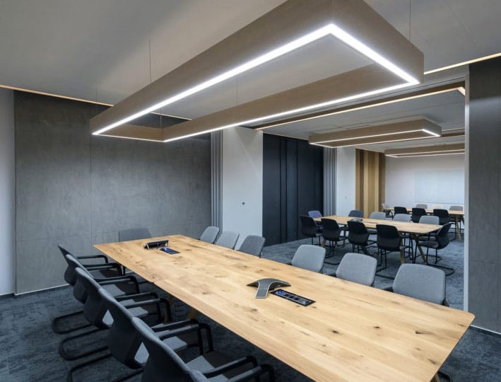 Pequeñas reuniones o grandes conferencias tienen cabida en la sede central de NEPI Rockcastle gracias a la flexibilidad aportada por nuestros tabiques móviles con el modelo TABIEXPERT TX-87. Este modelo comparte caracterísitcas con nuestro modelo mas popular (TX-107) con una pequeña salvedad, en este caso los paneles cuentan con la perfilería vista.