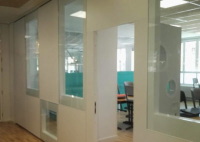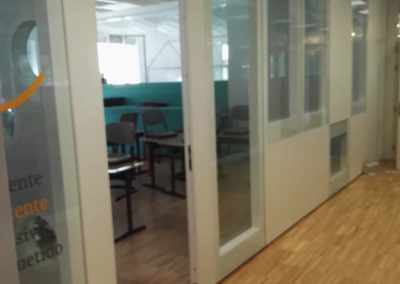 Descubre una de las mas amplias gamas del mercado: desde tabiques divisorios a alto grado de aislamiento y con una gran variedad de acabados.Todos nuestros tabiques móviles se componen de paneles acoplados entre sí mediante perfiles machihembrados de aluminio y quedan suspendidos del techo sin ningún tipo de guía o carril inferior. Los paneles quedan fijos en su posición mediante un doble zócalo extensible accionado con un cuarto de vuelta de manivela o con un pasador al suelo.